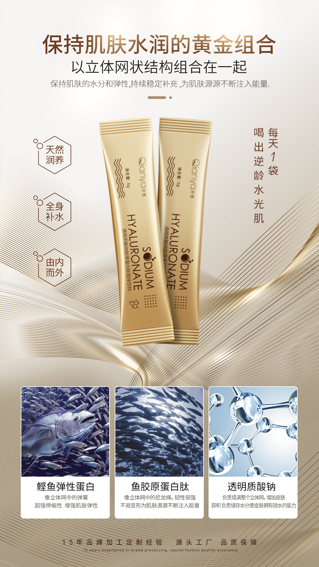 在食品添加劑中添加透明質(zhì)酸鈉作為營(yíng)養(yǎng)基用,而口服含透明質(zhì)酸鈉的食品則是為了起到補(bǔ)充機(jī)體水分、改善骨骼關(guān)節(jié)功能、保護(hù)胃黏膜等眾多功效。在食品級(jí)別應(yīng)用中其對(duì)透明質(zhì)酸鈉中純度的要求,相較于醫(yī)藥級(jí)別沒(méi)有那么高,但對(duì)微生物的要求會(huì)高一些。因?yàn)槿梭w消化道極端的PH和其他益生菌的存在,使得其對(duì)蛋白等物質(zhì)不需要做嚴(yán)格的要求也可以充分發(fā)揮其功能,所以對(duì)于食品級(jí)來(lái)說(shuō)其相對(duì)低純度的透明質(zhì)酸鈉就能滿足大部分廠家的需求。