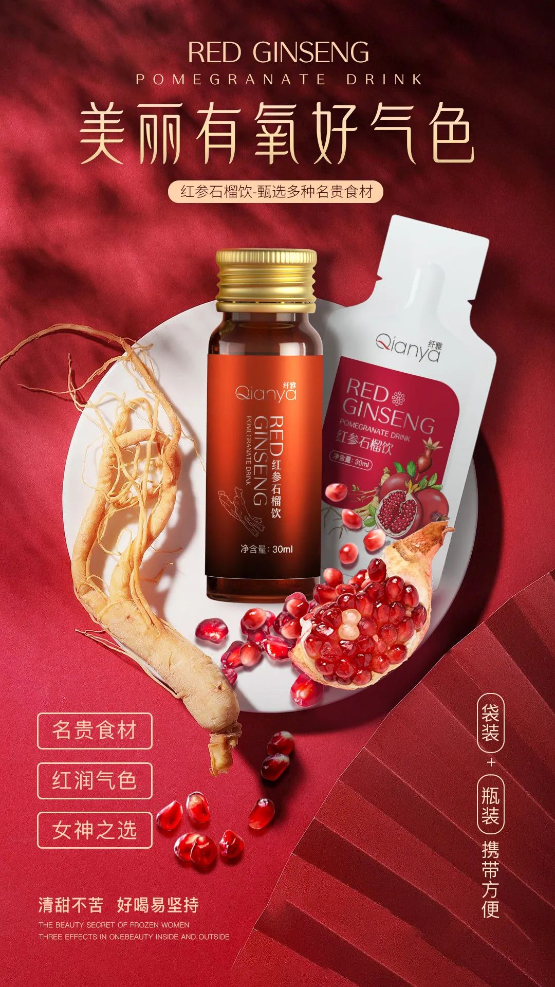 羅湖山生物特推出紅參石榴飲品,紅參+阿膠+紅石榴,為紅潤美麗而生