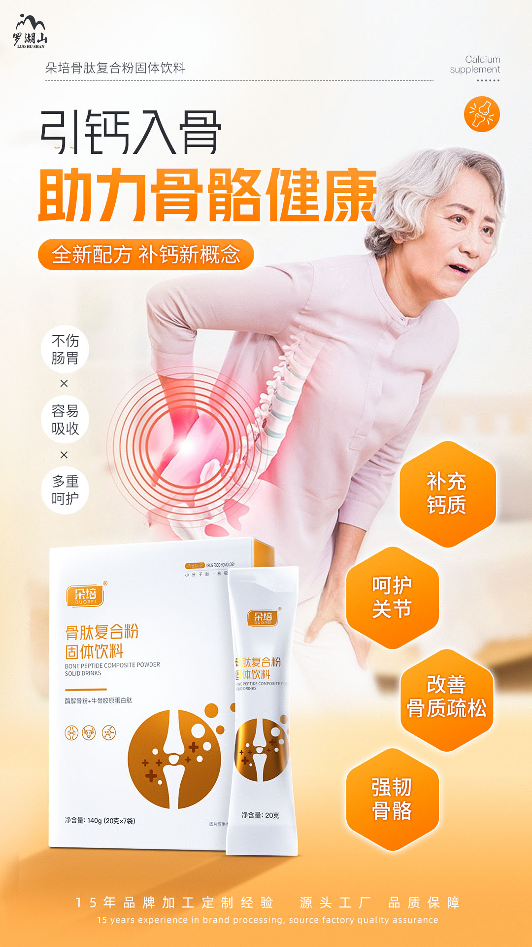 牛骨肽具有良好的鈣吸收能力和鈣結合能力,合理補充牛骨肽可以有效地提升骨密度,幫身體鎖住鈣,讓你免除骨質疏松的困擾,身體更強壯,更好地享受生活。
