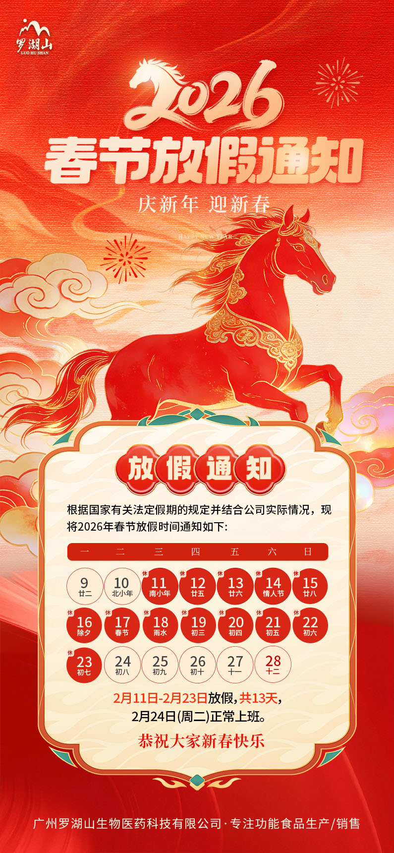 放假時間:2026年2月11日(星期三/農(nóng)歷臘月二十四)至2026年2月23日(星期一/農(nóng)歷正月初七)